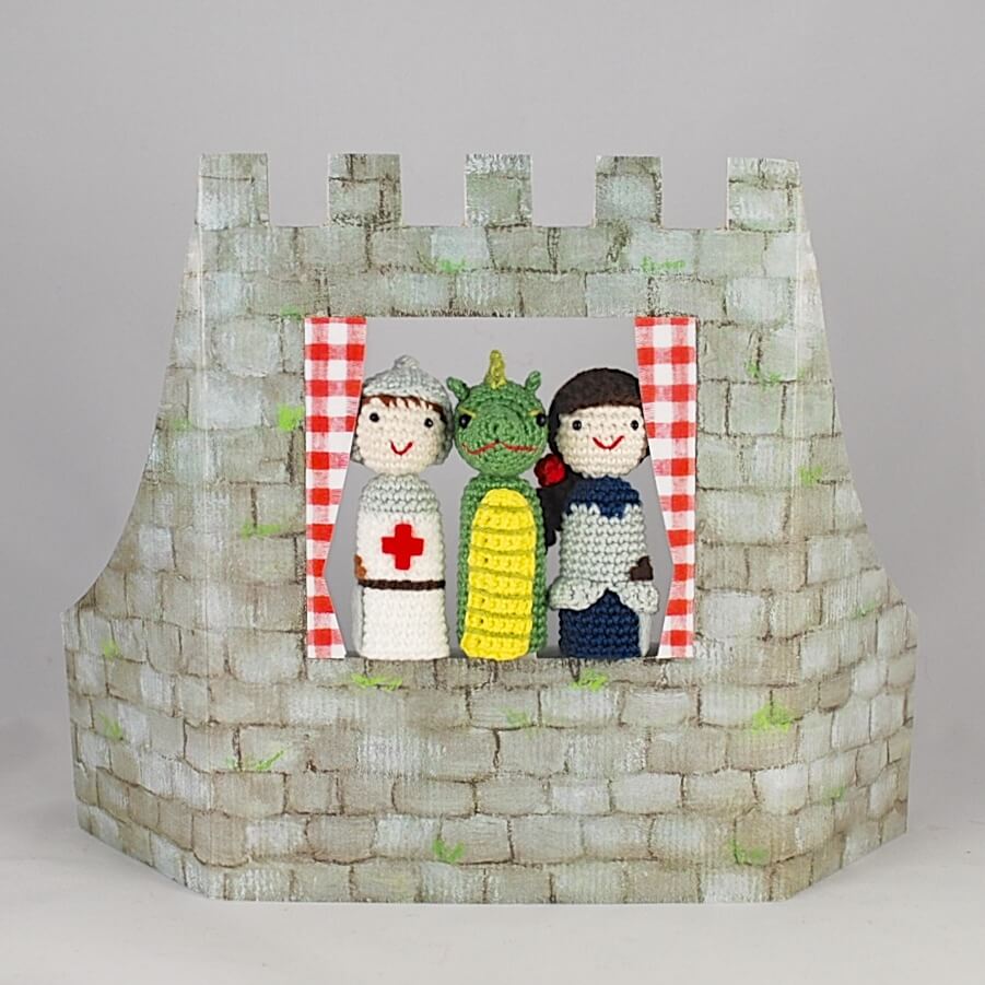 Knight, princess warrior and dragon amigurumi puppets